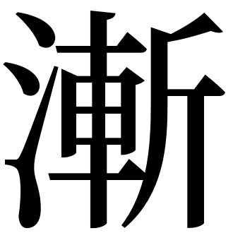 意味 | [1] ようやく。次第に。だんだんと。 [1] すすむ。じわじわ進む。少しずつ進む。 [1] ものごとのおこるきざし。おこり。はじめ。 [1] 易(エキ)の六十四卦の一つ。 [1] 中国を流れる川の名「漸水(ぜんすい)」のこと。今の浙江(せっこう)。 [2] ひたす。しみる。しみこむ。うるおす。 [2] 川が注ぐ。海に流れ込む。 [3] 山が高く険しいさま。 |